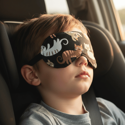 Opaska na oczy do spania dla dzieci komfortowa 100 % bawełna koty brązowe