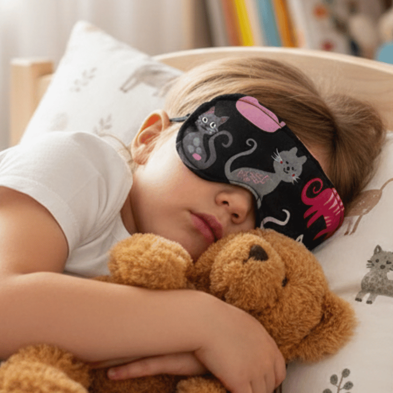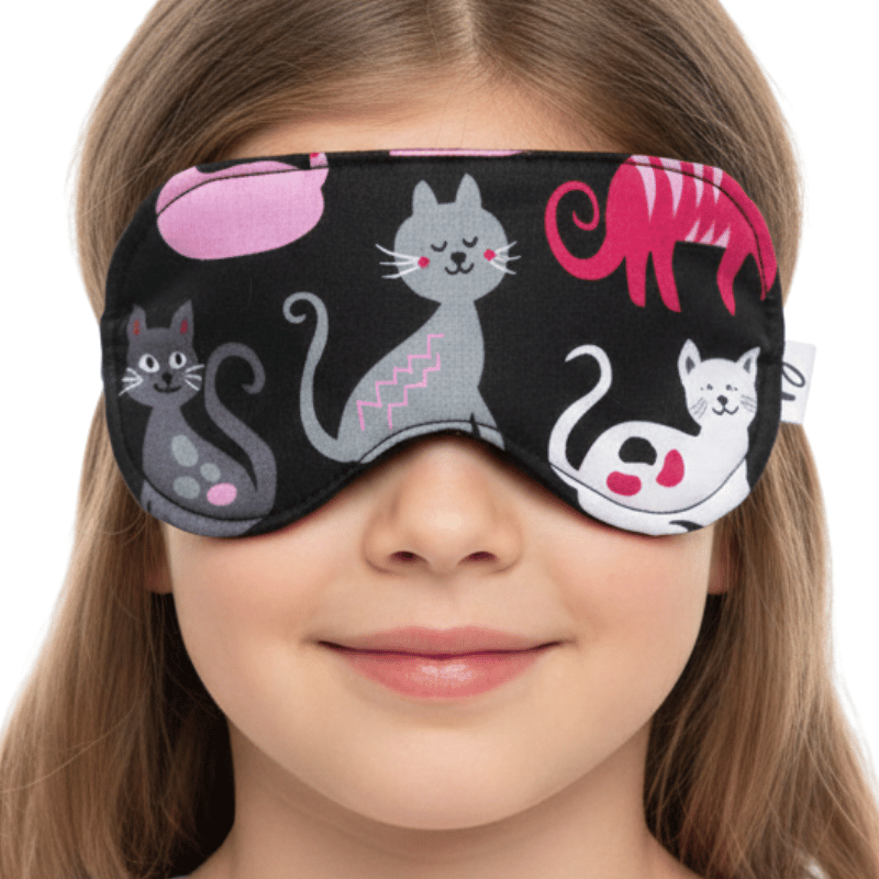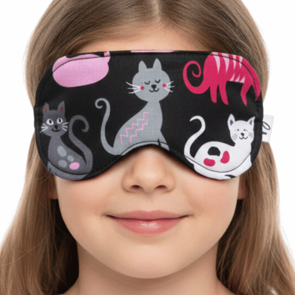 Opaska na oczy do spania dla dzieci komfortowa 100 % bawełna koty fuksjowe