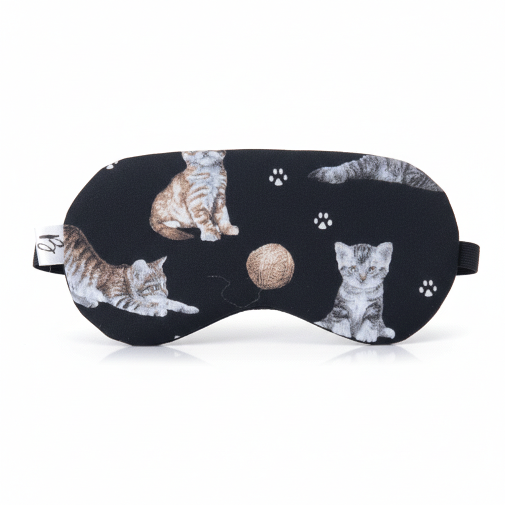 OPASKA maska na oczy do spania i medytacji 100% bawełna koty na czarnym
