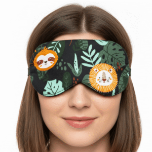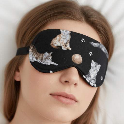 Komfort bez ucisku: Dzięki miękkiemu, antyalergicznemu wypełnieniu opaska dopasowuje się do kształtu twarzy, nie uwierając podczas snu na boku.