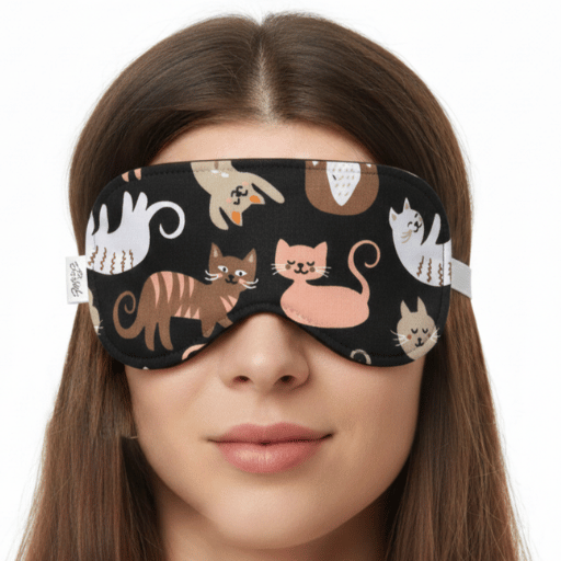 OPASKA maska na oczy do spania i medytacji 100% bawełna koty brązowe