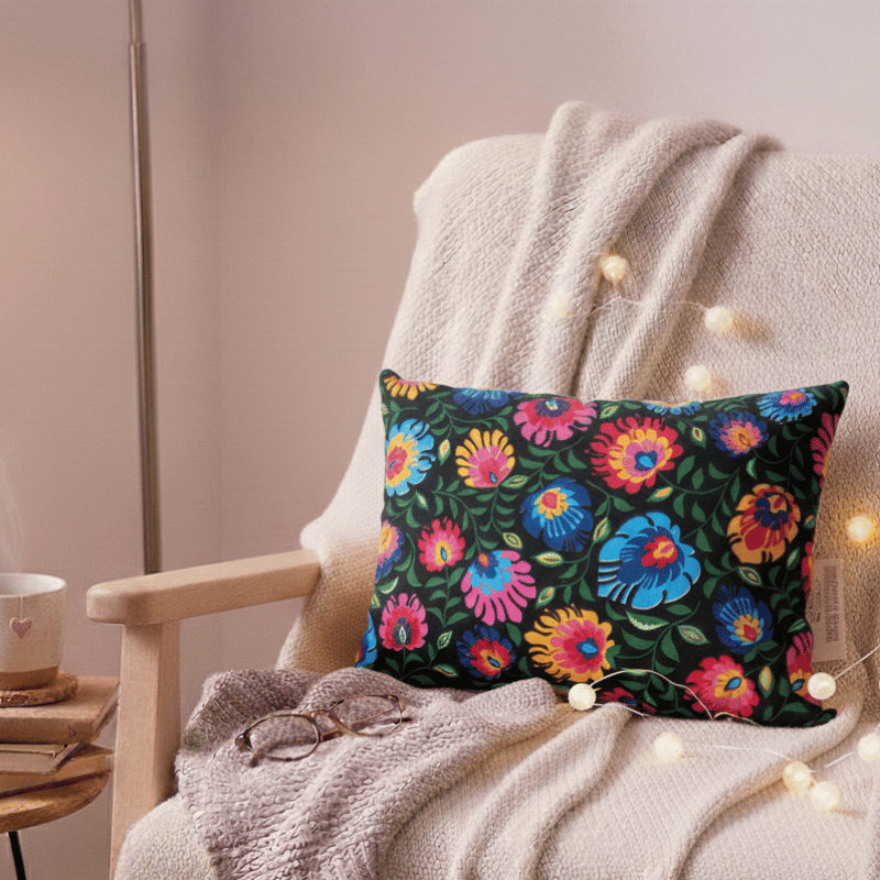 Poduszka jasiek bawełniana 30×40 cm Bajbi folk czarny