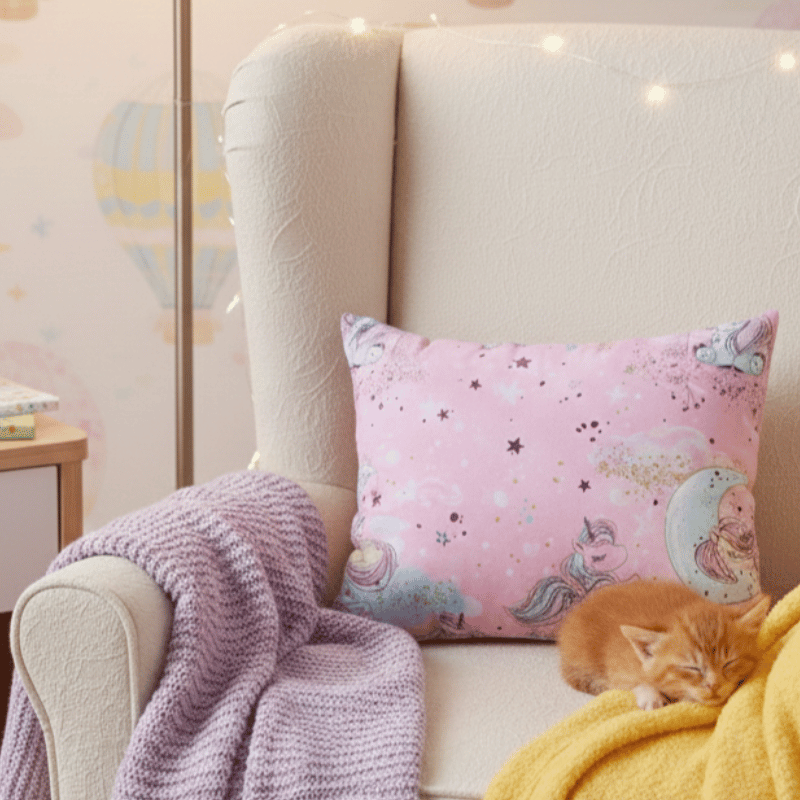 Poduszka bawełniana 30×40 cm Bajbi jednorożce różowe poduszka dziecięca antyalergiczna 100% bawełna