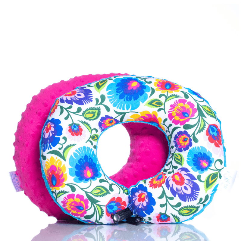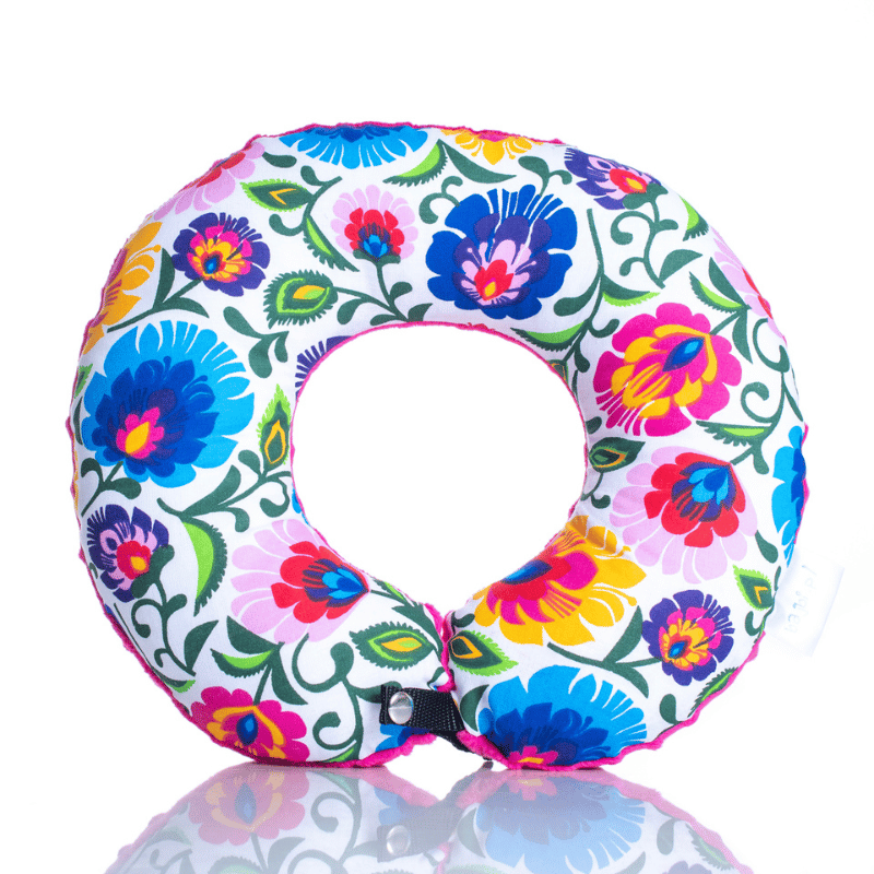 Poduszka podróżna na szyję rogal dla dzieci bawełna minky wygodna – folk biały
