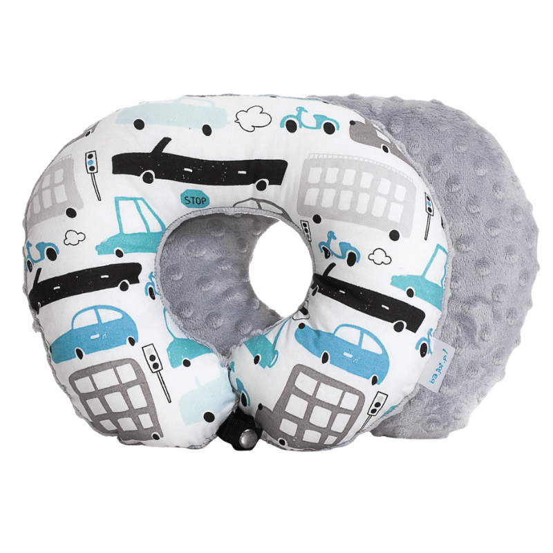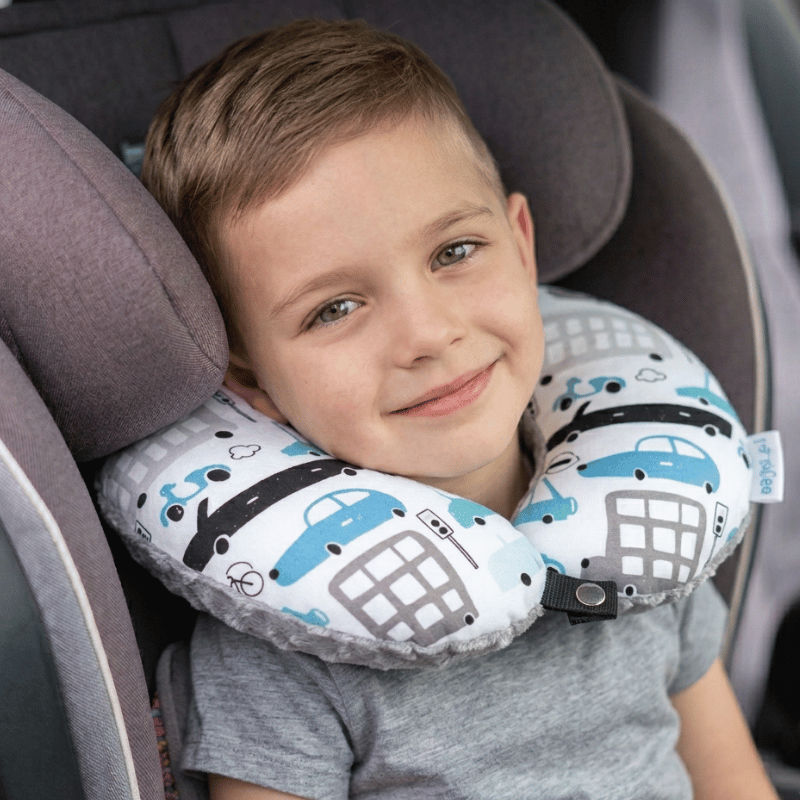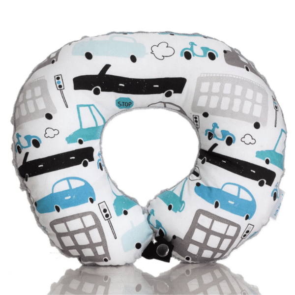 Poduszka podróżna na szyję rogal dla dzieci bawełna minky wygodna – autka