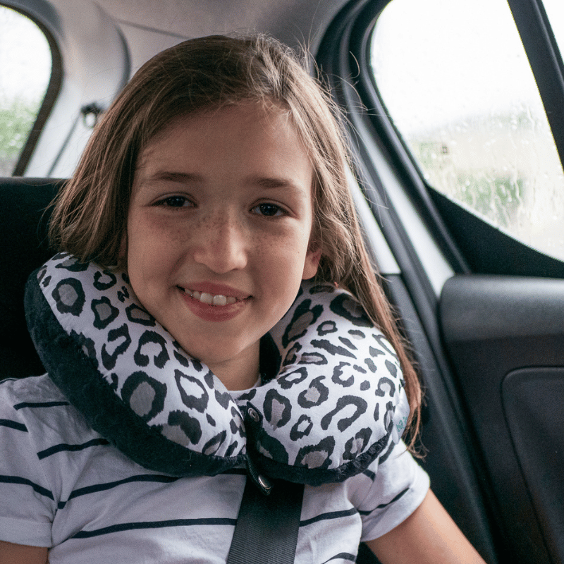Poduszka podróżna na szyję rogal dla dzieci bawełna minky wygodna – cętki
