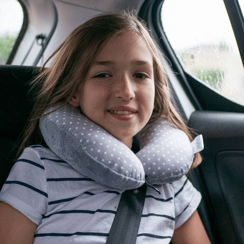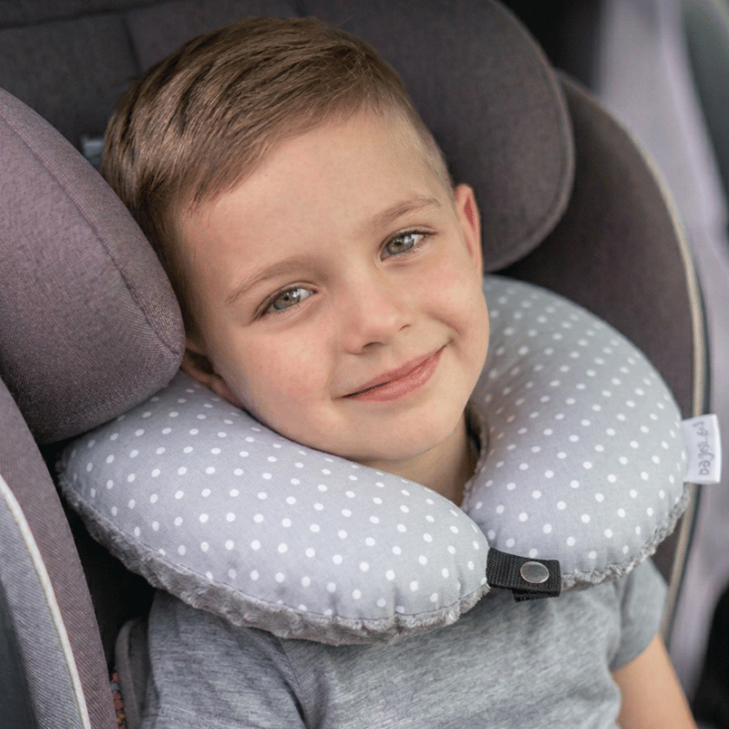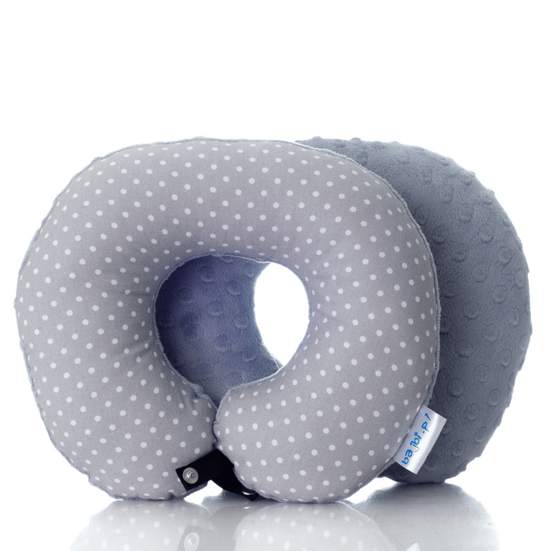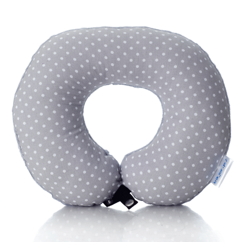 Poduszka podróżna na szyję rogal dla dzieci bawełna minky wygodna – groszki szare