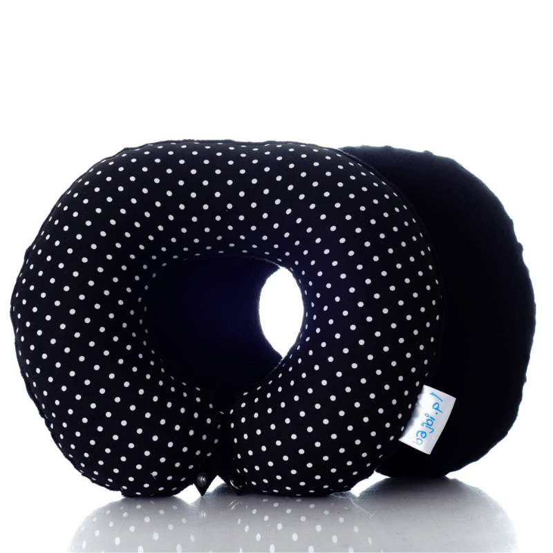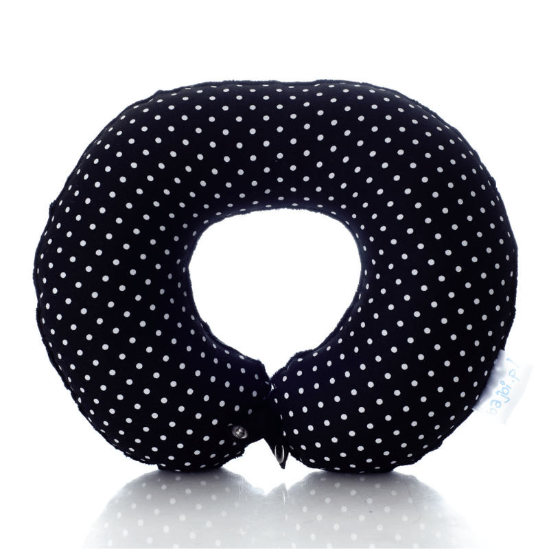 Poduszka podróżna na szyję rogal dla dzieci bawełna minky wygodna – groszki czarne