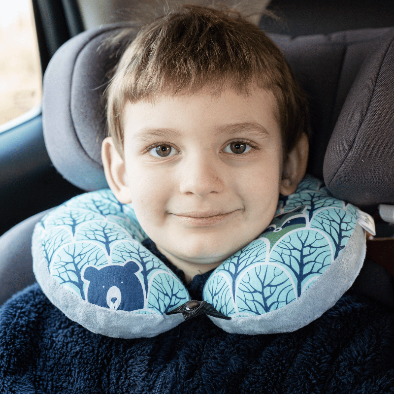 Poduszka podróżna na szyję rogal dla dzieci bawełna minky wygodna – akuku