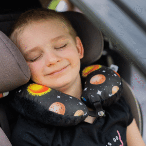 Niezależnie od tego, czy planujecie krótką wycieczkę za miasto, czy wielogodzinny lot – poduszka Bajbi sprawi, że maluch obudzi się wypoczęty i bez bólu karku. Stylowy wzór zachwyci każdego małego podróżnika.