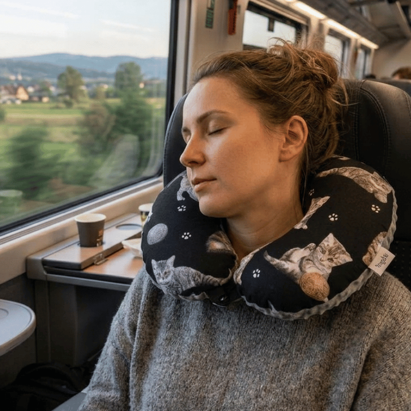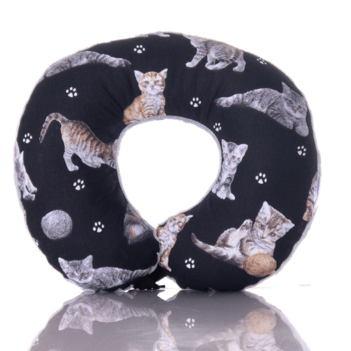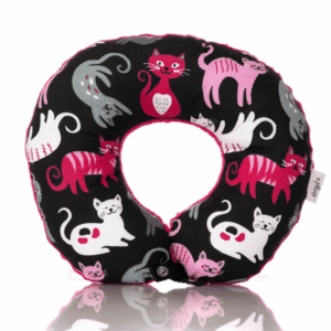 Poduszka podróżna na szyję wygodny rogal zagłówek dla dorosłych – koty na czarnym