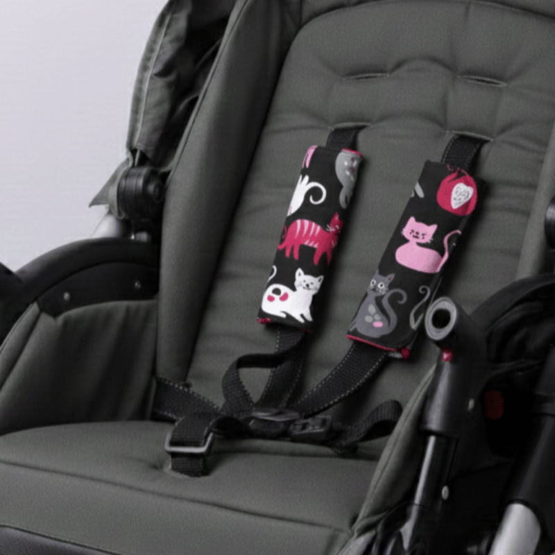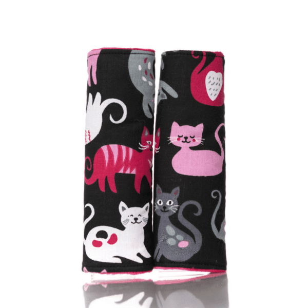 Dwustronne nakładki na pasy Bajbi bawełna minky 2 szt koty fuksjowe