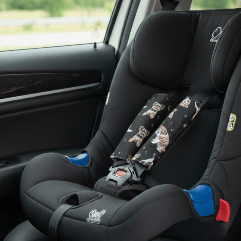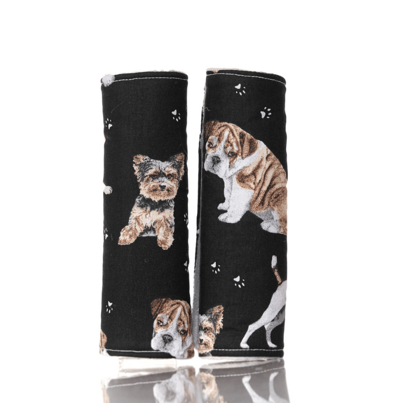 Dwustronne nakładki na pasy Bajbi bawełna minky 2 szt pieski czarne